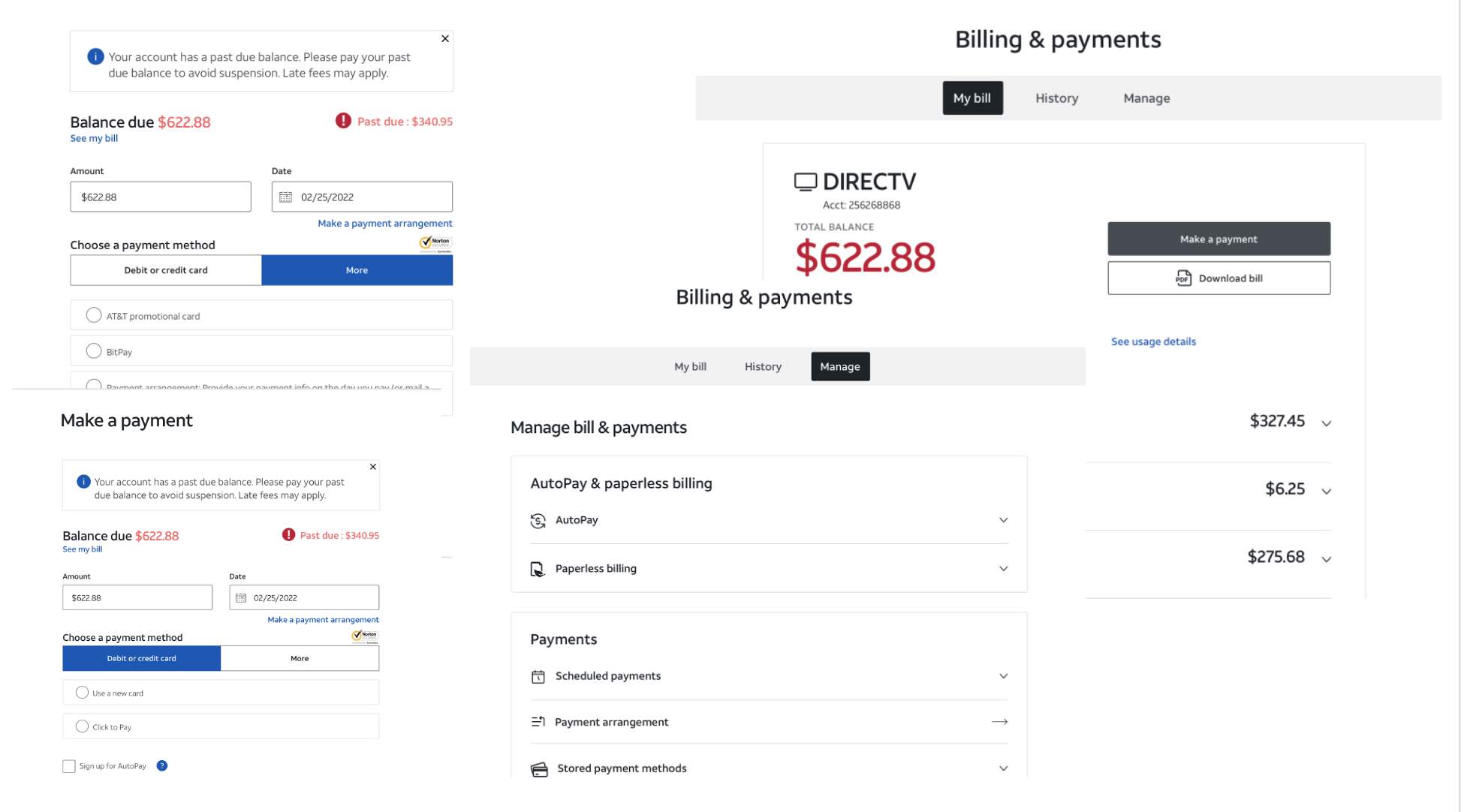 DIRECTV and AT&T separated in August 2021. I was figuring out how DIRECTV manages billing and payments with AT&T's system.