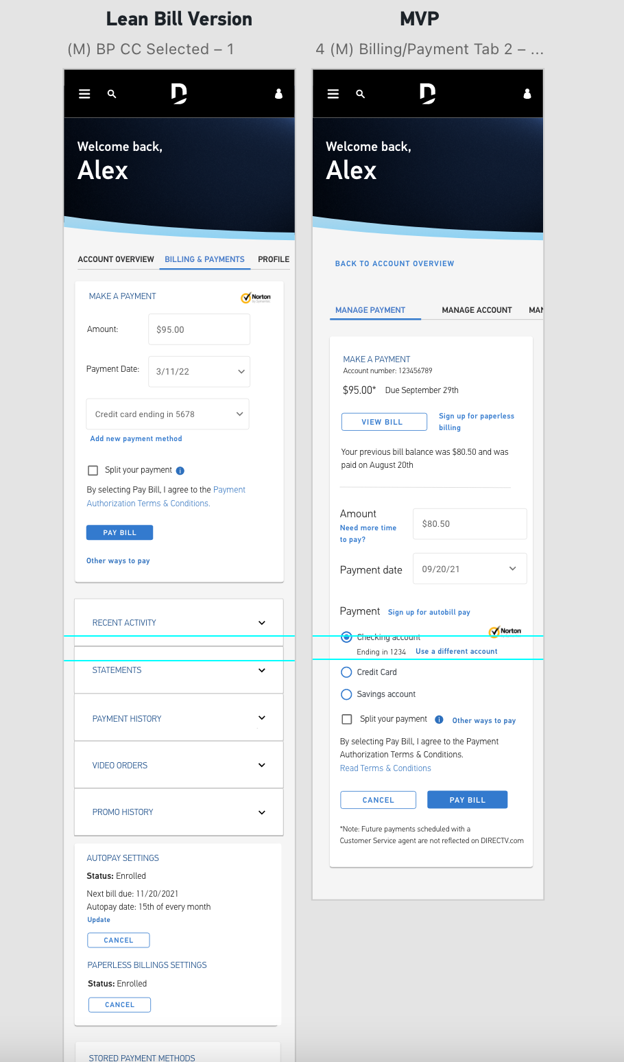 I reviewed AT&T's current flow and created drafts to show the suggested changes to the product owner. Due to the short timeline, I focused on making these drafts instead of wireframing. Afterwards, I shared these designs with developers to make the implementation smoother.